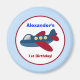 Ímanes personalizados bonitos para presentes ou favores. Estes apresentam nosso avião azul com um tema de transporte.