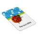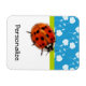 Personalize acrescentando seu nome a este padrão floral azul e branco de tendência com uma faixa verde e uma joaninha vermelha fofa.