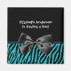 Etiquetas de chá de fraldas, bonitas e tendas, para garotos de zebra, com listras de chá e zebra pretas modernas e embelezadas com uma fita preta impressa em na moda. Personalize acrescentando o nome da mãe a ser a este design preto chico e turquesa. Anúncio de nascimento perfeito para o bebê!