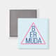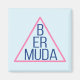 Mostra "Bermudas" no texto azul moderno dentro um triângulo cor-de-rosa das Bermudas. A lenda e o mito do misterioso Triângulo do Diabo e do Beco do Furacão continuam. Legal design. Excelente souvenir para lembrar de uma viagem às Ilhas Bermudas, para turistas, visitantes e moradores das Bermudas.