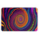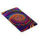 Cores triplas e linhas de malabarismo formam um padrão espiral denso.