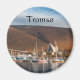 Foto viagem de Tromo - Tromsdalen, um bairro urbano da cidade de Tromso na costa norte da Noruega, Escandinávia. A fotografia mostra a Catedral Árctica (Ishavskatedralen) e a Ponte Tromso que conecta Tromsdalen ao centro da cidade.