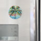 Uma versão abstrato da palmeira em traçados verdes, azuis e vermelhos escuros. Artista: Silvia Vassileva