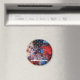 Um desenho abstrato colorido de Donald Trump no Monte Rushmore.