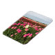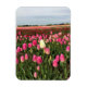 cheio bonito de tulipas cor-de-rosa e vermelha com uma tulipa branca destacada. Foto tirada em abril de 2017 na Fazenda Tulipas de Sapato de Woodburn, Oregon.