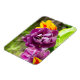 Tulipas lilás brilhantes num dia ensolarado no jardim. A foto foi tirada em junho de 2022. O poster é adequado para o design do interior.