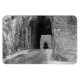 Enquanto estávamos em uma pista cênica na autoestrada Agulha nas Colinas Negras de Dakota do Sul nós encontramos um túnel muito baixo e estreito. A silhueta negra de uma motocicleta e seu cavaleiro é visível passando pelo túnel da autoestrada da Agulha. Esta foto branca e negra da paisagem rochosa e do motociclista foi tirada no Parque Estadual de Custer.