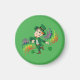 Magnet com uma Ilustração de um lindo duende sorridente e dançante, ele está vestindo um terno verde e um chapéu de cima e está cercado por salpicos de cor arco-íris Um design perfeito para celebrar o Dia de São Patrick, desenhado por Radka2D