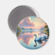 Sereno e elegante, este trabalho de arte capta um par de cisnes a deslizar graciosamente através de um lago tranquilo ao pôr do sol. Ideal para decoração inspirada na natureza ou ideias românticas de presentes.