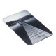Esta foto em preto e branco apresenta um píer de madeira que vai para a água.