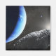 Um conceito de artista da pequena lua de Netuno Hippocamp que foi descoberto pelo Telescópio Espacial Hubble em 2013. Apenas 20 milhas de diâmetro, pode ser um fragmento quebrado de uma lua vizinha muito maior, Proteus, vista como um crescente no fundo. Esta é a primeira evidência de que uma lua é uma ramificação de uma colisão de cometa com um corpo pai muito maior.