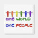 As figuras do arco-íris ligam armas e ficam de pé nas palavras: "Uma Pessoas do Mundo" para tirar a mensagem de que a paz mundial começa conosco. Temos de nos dar bem um com o outro antes de podermos ter paz.