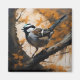 Esta pintura a óleo retrata um vibrante pinto perfurado confortavelmente num ramo florescente de uma árvore majestosa. A árvore está viva com ricas castanhas, filtrando através das folhas a luz solar aplicada, criando um ambiente quente e convidativo.
