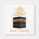 Nós projetamos o ímã. Esta design representa a Kaaba, que é o ponto focal do santuário para todos os muçulmanos. A frase "Abençoado Umrah" é escrita em Thuluth com uma oração para o peregrino, e o design pode ser personalizado com seu nome e o nome de sua esposa ou daqueles com ele.