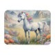 Um ímã flexível mostrando uma imagem sonhadora de um unicórnio branco com um mané arco-íris em pé num campo de flores. Ao fundo estão montanhas majestosas. O presente perfeito para dar àqueles que amam unicórnios mágicos e místicos. Contém conteúdo generativo.