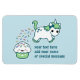 Um unicórnio verde super giro a popar em cupcake feliz. Personalize com seu próprio texto.