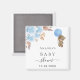 Para um chá de fraldas elegante e moderno, celebrando um menino. Um fundo branco. Decorado com florais azuis claros, grama-pampas e ursinho-peluche segurando um balão.