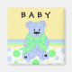 Personalize este ímã fofo com um nome para bebês, a mãe vai adorar! Fundo de cor macia em amarelo, azul e verde. Um doce ursinho azul com um grande arco verde.