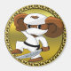 Um desenho animado e engraçado, Cheburashka, com orelhas marrons grandes e um cinturão preto. Espada na mão esquerda. Com fundo dourado e armação dourada. Que este design engraçado divertido e divertido faça a conversa por você.