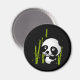 Que bela e adorável ilustração de um urso panda preto e branco sentado entre as pedras verdes de bambu em um pequeno bosque, parecendo feliz, amigável e amoroso. O fundo negro realmente faz essa pop panda pequena!