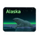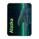 Um momento pacífico na longa noite árctica. Um Urso Polar repousa na borda de uma área aberta no gelo da matilha. As Luzes do Norte brilham à distância; estrelas brilhantes brilham sobre a cabeça. A leitura de texto "Alaska" aparece em verde e branco brilhantes. Os ursos polares estão ameaçados. Quanto tempo mais cenas como esta poderão ocorrer? Por favor, ajude a salvar os Ursos Polares da extinção.