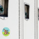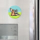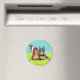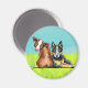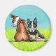 Ilustração de lápis e tinta de um Cão de Bovinos australiano amontoado com um vitelo castanho e branco. Arte de Andie.