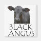 Foto cortada de um jovem filhote de raça negra angus, com o Black Angus por baixo. Excelente de presente para o açougueiro, pecuarista ou churrasco que aprecia carne de angus preta certificada.