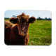 Apresentando uma jovem vaca felpudo castanha, pendurada na fazenda num campo. Com um tempo tão bonito seria uma vergonha não tirar essa foto de perto.