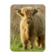 Uma vaca jovem Highland com uma cabeça branca invulgar na relva de junco. Estes bovinos de terras altas têm provavelmente cerca de 18 meses a olhar para aqueles chifres.