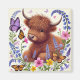 Íman Vaca Highland com Flores e Borboletas