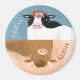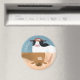Uma vaca leiteira sorridente é legal e "limpa" vestindo papoilas vermelhas em seu cabelo enquanto um touro marrom e ruidoso está chutando pó e ficando "suja". Este imã reversível ilustrado ajuda a indicar se os pratos da máquina de lavar louça estão limpos ou sujos. Ligações às portas da máquina de lavar louça magnética. Ilustração original de Noël Snow.