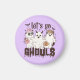 Design de Halloween bonito e espirituoso em T-shirts, canecas, bolsas, travesseiros, botões, e mais, apresenta três fantasmas de Dia de as Bruxas engraçado com buzinas diabólicas e chapéus de bruxa, morcegos, flores, abóbora de jack ou lanterna, e texto que lê Vamos Ir Ghouls!