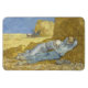 Siesta (depois de Millet), de Vincent Van Gogh, o óleo na canvas, 1890, é uma pintura de um fazendeiro e sua esposa cochilar à sombra de um enorme palheiro em um campo de trigo, seus calçados e colhendo cicutas em primeiro plano. Um esquema de cores de amarelos quentes, ensolarados e sutis, verdes e laranjas contrasta com o céu azul vívido e tons de cinza legal contrastantes. Ao fundo, uma vaca solitária esmalta, sua vagão de feno perto. Van Gogh copiou a composição de uma pintura do francês Barbizon realista Jean-Francois Millet, uma das muitas cópias do mestre do século 19 que Van Gogh tanto admirava.