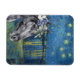 A bela e artística compilação mostra a Noite Estrelada de Van Gogh sobre o Ródano como fundo com retrato de belo cavalo negro com cobertura floral de cor d'água.