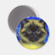Magnet com um gato siamês na pintura de Van Gogh Starry Night! Esta beleza fofa se coloca em frente a um céu azul noturno com lua e estrelas brilhantes. Um presente aconchegante para amantes de gatos e colecionadores de arte holandeses!