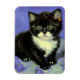 Magnet com um gatinho de smoking ao estilo de Vincent van Gogh! Este gatinho bonito se posiciona com flores roxas. Um presente magnífico para amantes de gatos e colecionadores de arte holandeses!