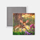Decorem a vossa cozinha para a estação de primavera com esta imã de geladeira de flores e vida selvagem Este ímã da cozinha mostra uma fotografia de um veado bebê deitado debaixo de um pinheiro. Para melhorar a beleza da estação de primavera, adicionei uma camada de grama verde e flores de primavera; tulipas e daffodils.
