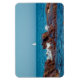 Uma fotografia de um veleiro no horizonte, e ondas caindo na formação de rochas perto da costa. Imagem Copyright ©2018 Kimberly J Tilley.