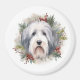 Íman Velha Inglês Sheepdog Christmas Wreath Festivo Pup