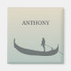 Crie um pequeno presente personalizado com estilo veneziano. Este ímã de geladeira tem uma ilustração do estilo silhueta de uma gondolier e uma gondola de cinza contra um fundo colorido do sol de amarelo-ouro claro e azul-claro. A inscrição de cinzas está pronta para ser personalizada com um nome ou outro texto.