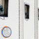 As faixas brilhantes em laranjas e amarelos formam o fundo enquanto o quadro azul brilhante marca a sua foto favorita