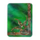 Um abstrato funciona em verde brilhante e cobre. Uma gema verde clara é rodeada por lâminas de erva de cobre, acentuadas por esmeraldas cintilantes e esteiras de laranja. Os fractais ondulados e curvados no fundo aparecem em dentro verde, castanho e laranja mais profundo, o filigre de cobre do motivo das folhas.