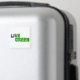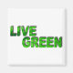 As palavras VIVE GREEN em verde-folha brilhante com uma sombra para um olhar 3D.