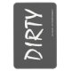 A palavra "DIRTY" impressa num ímã