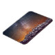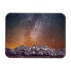 Esta foto mostra a Via Látea sobre Grand Teton. A luz da cidade atrás das montanhas Teton lança um brilho laranja.