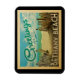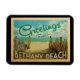 Esta design do cartão postal da Bethany Beach mostra uma praia arenosa com uma bela água turquesa oceânica e acima do mar, um céu azul com nuvens brancas e onduladas. No estilo viagens vintage.