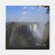 Impressões e presentes horizontais de Victoria Falls apresentam uma bela fotografia colorida de Victoria Falls na África, com um arco-íris sendo lançado em um brilhante céu azul, tirado por Kurt Keller com uma câmera de 35 mm no Zimbábue enquanto estava em um Safari Africano.