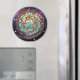 Eu gosto de compartilhar a beleza oculta do vidro de arte ao tirar imagens próximas dos meus mosaicos de vidro manchado. Meu objetivo é capturar o momento em que a luz solar revela o detalhe interno e traz as muitas cores dentro do vidro. Esta é uma imagem de "Planeta Água", um dos meus mandalas mosaicos. David Chidgey em artglassmosaics.com