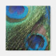Linda vida morta de duas penas de pavão. O fundo azul traz o azul aos olhos das penas. A fotografia foi tirada com uma lente de olho de peixe dando-lhe um olhar muito distinto. A foto recebeu um acabamento de coloração de vidro para acrescentar um efeito legal e excelente de aniversário, graduação e presentes de casamento