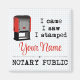 Eu Vim, Vi, Esmurrei. Anuncie seu negócio notarial com um toque de humor. Botão personalizado faz um presente ponderado para qualquer notário profissional ou agente assinante de empréstimos que forneça serviços legais ao público. Este design de selo notário vermelho é apresentado sobre um fundo de papel de gráfico azul. Personalize alterando "Seu nome" para um nome, localização ou qualquer outro texto de sua escolha. Design: Dimensionar e posicionar o texto para flutuar agradavelmente no espaço entre os elementos gráficos.